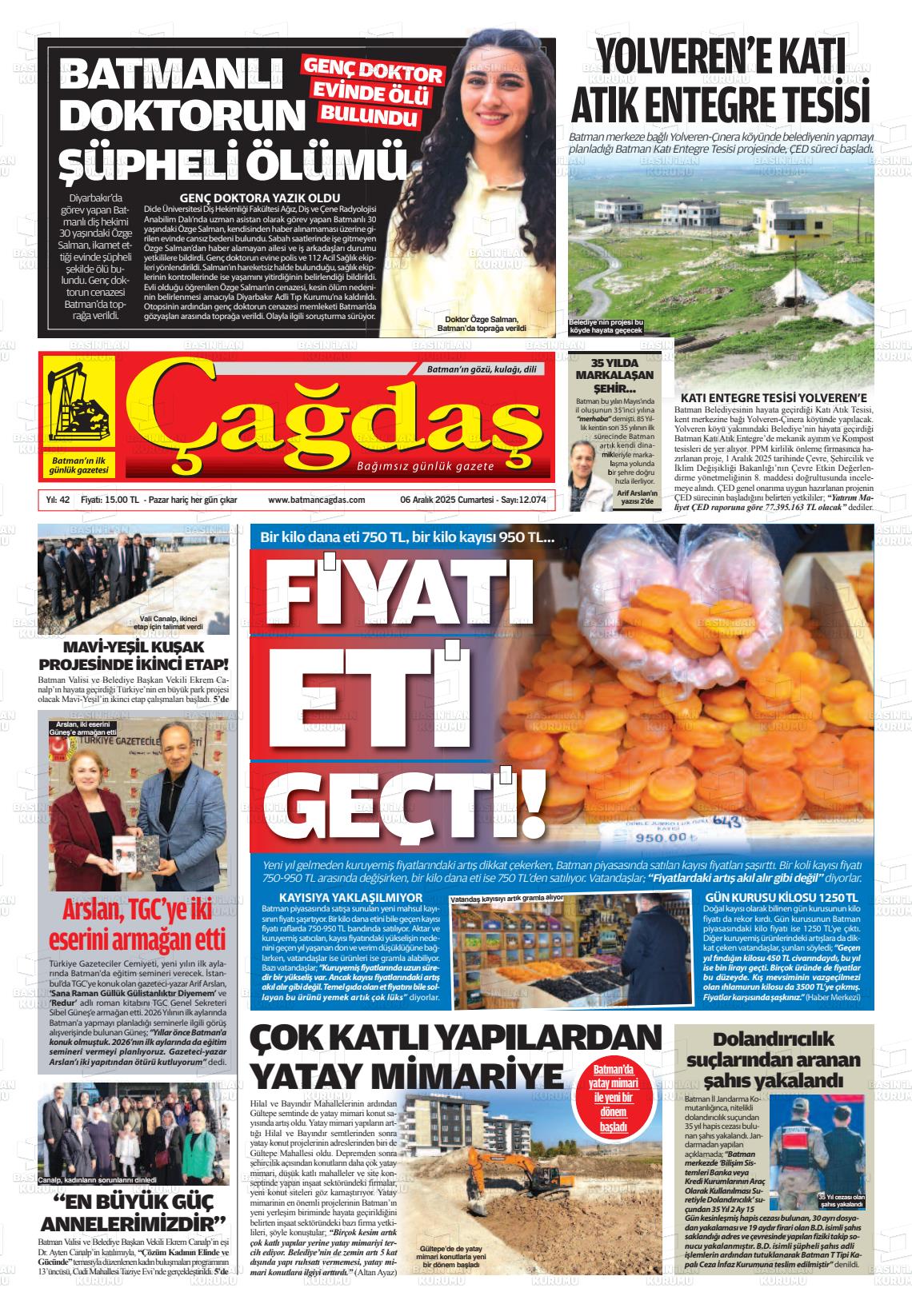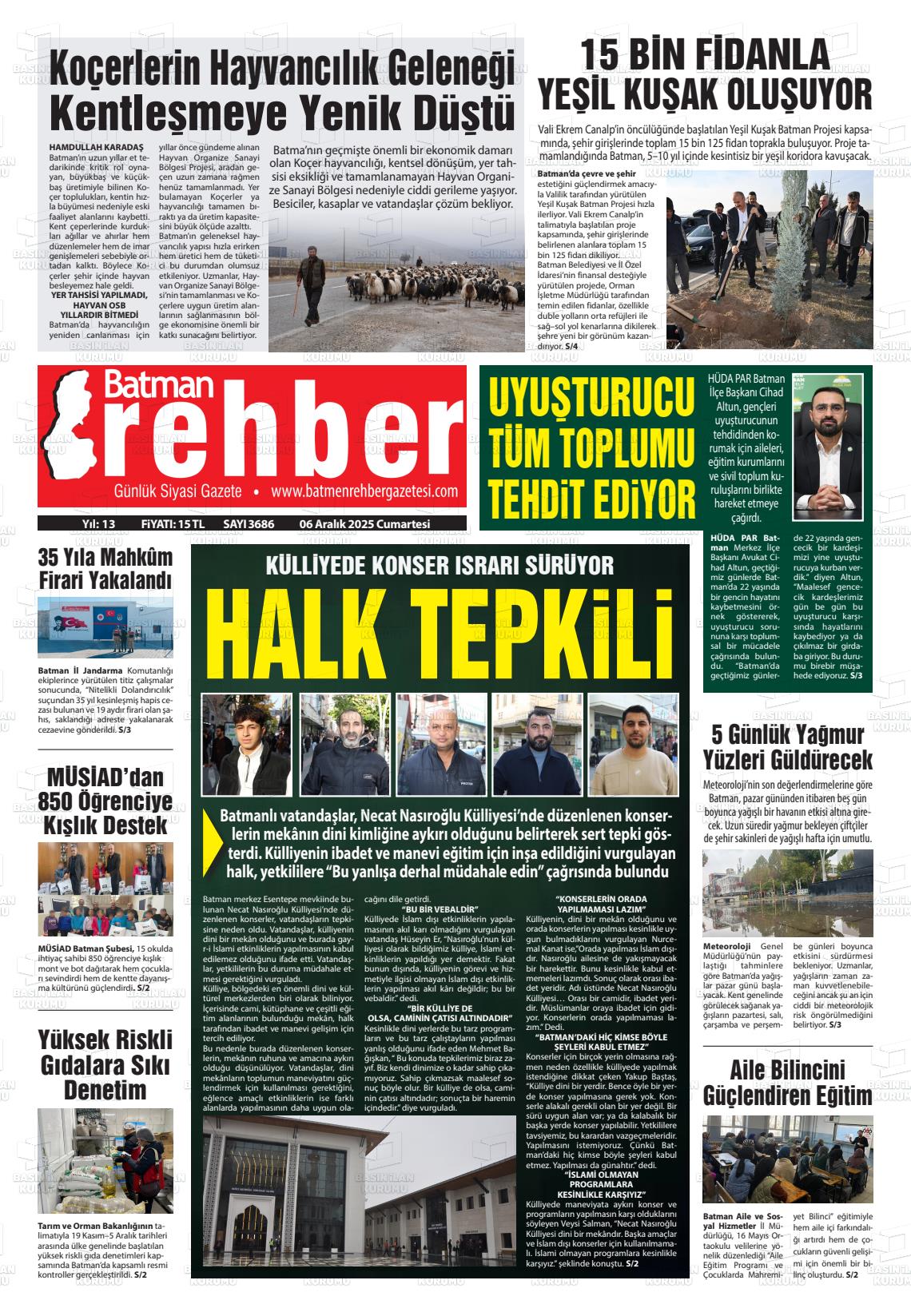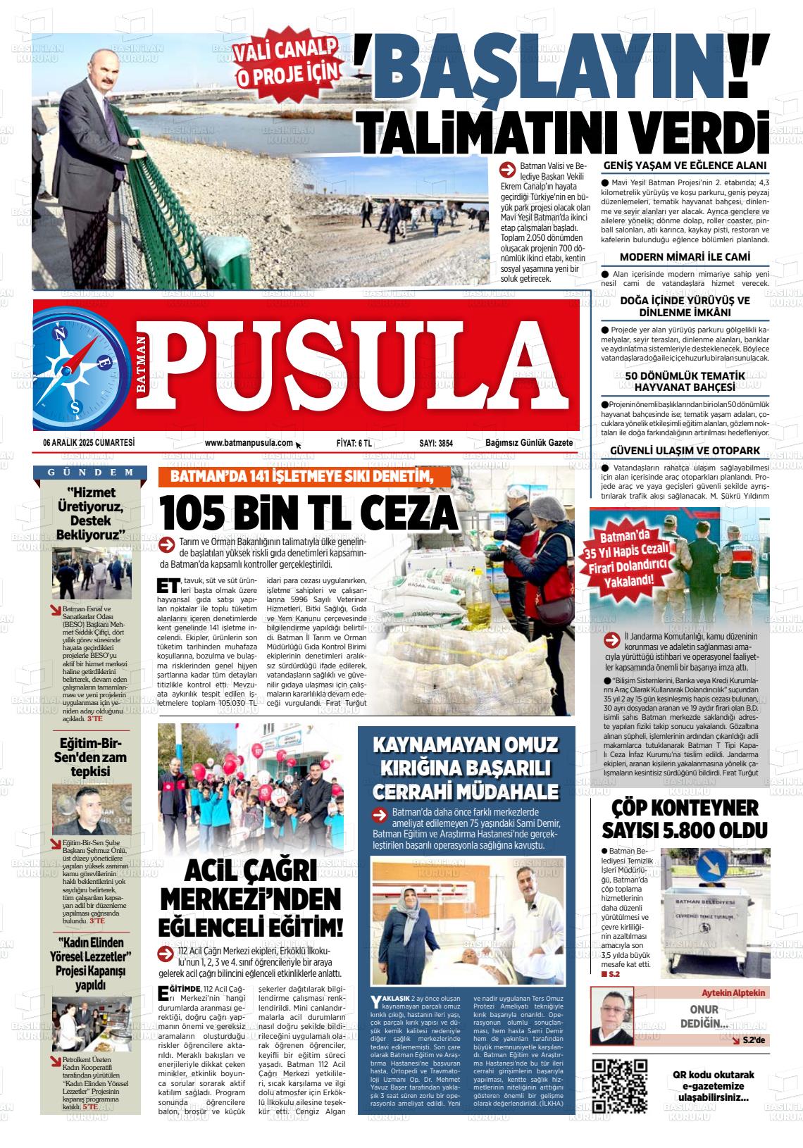 Batman Yerel Gazeteleri 06 Aralık 2025, Cumartesi Günü Manşeti
